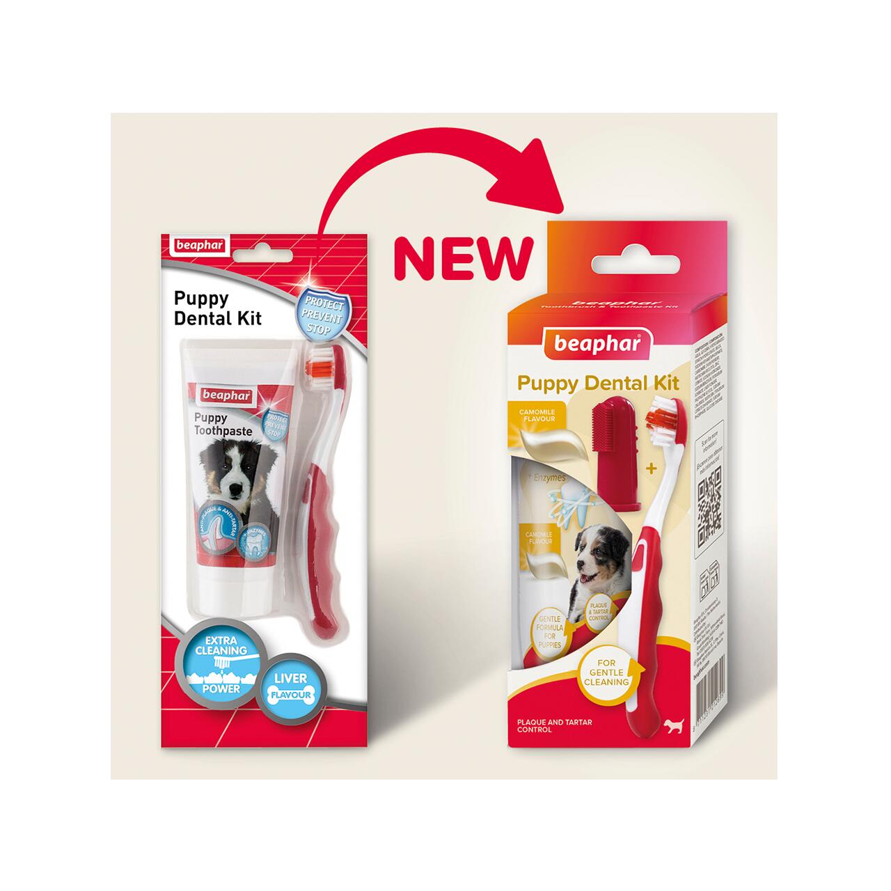 BEAPHAR KIT DENTAR PASTĂ+PERIUȚĂ PENTRU CĂȚELUȘI 50G