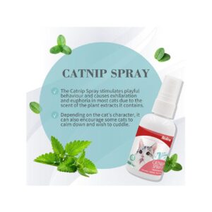 Sprayul cu iarbă-mâței stimulează comportamentul jucăuș și poate provoca relaxare și euforie la majoritatea pisicilor datorită extractelor vegetale conținute. În funcție de temperamentul pisicii, poate încuraja atât joaca, cât și calmarea acesteia. Mirosul irezistibil va trage pisica, aceasta se va juca, va atinge sau își va freca capul de obiectele pulverizate. După pulverizare, jucăriile, devin și mai atractive, datorită extractului de iarba-mâței. Efectele euforice și amețitoare aduc pisicii un nivel ridicat de bucurie și bunăstare. Spray-ul poate fi folosit pentru distragerea atenției în timpul vizitelor la medicul veterinar sau în situații deosebit de stresante.