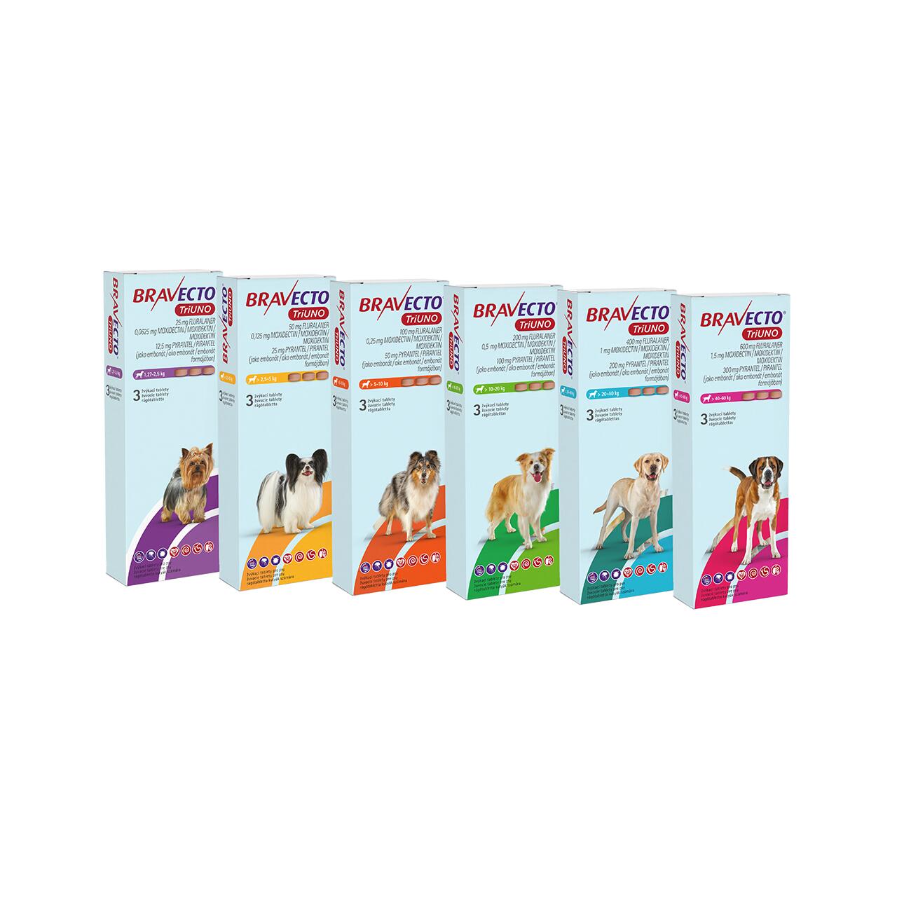 BRAVECTO TriUNO comprimate masticabile pentru câini (> 2.5-5 kg)
