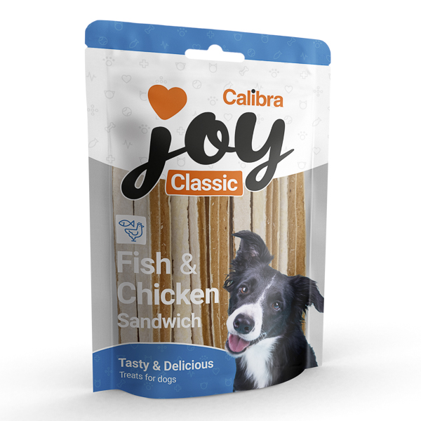 Hrană complementară pentru câini. Fâșii tip sandwich de pui și cod.