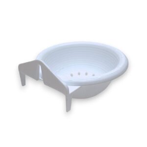 Cuib pentru păsări exotice confecționat din material plastic de culoare albă.