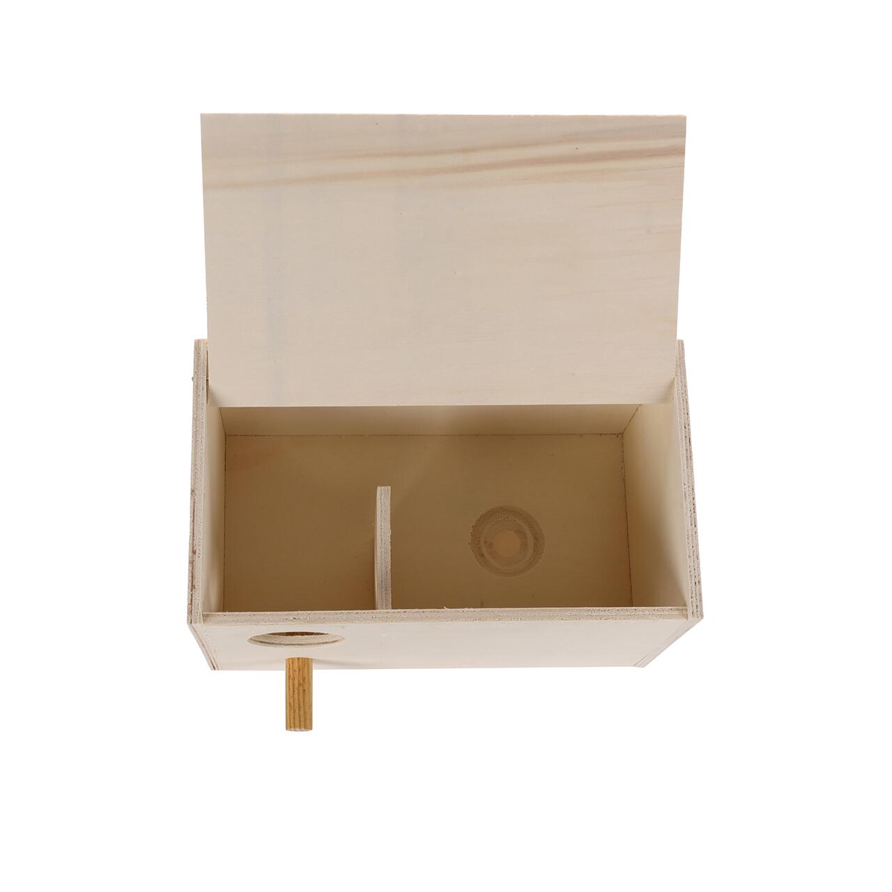 Cuib pentru păsări agapornis confecționat din lemn de calitate și rezistent.
