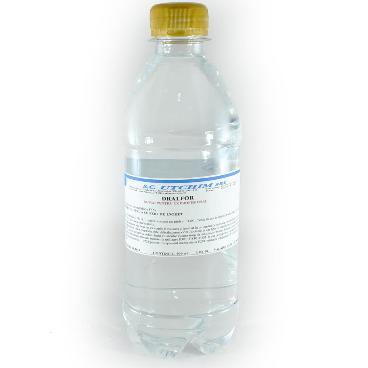 DENUMIREA PRODUSULUIDRALFLOR (FORMOL 37%)Substanta activa – 37% formaldehida.Numai pentru uz profesional!.PRODUS SENSIBIL LA FRIG, A SE FERI DE INGHET!.H331 Toxic in caz de i…
