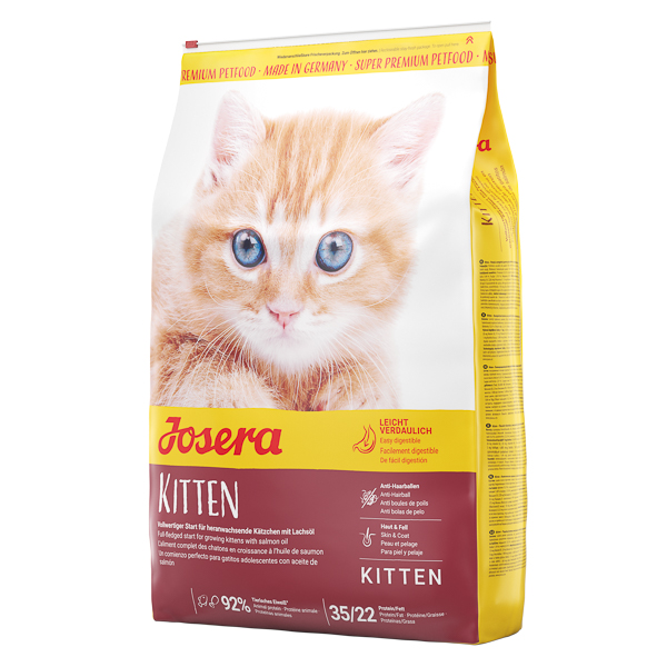 Hrană completă pentru pisici gestante, care alăptează și care sunt în creștereAportul de substanțe nutritive optim este deosebit de important mai ales în perioada de creștere sau perioada de gestație și de alăptare. Josera Kitten este o hrană cu un conținut energetic ridicat, ușor de digerat și deosebit de savuroasă, concepută special pentru această fază.Hrana ideală pentru pisici în creștere, până la finalul primului an de viață, precum și pentru pisici gestante sau care alăpteazăCu multă energie și proteine, precum și ulei valoros de somon, pentru nevoile deosebite în etapele importante de viațăUșor digerabilăCu fibre dietetice, care pot preveni formarea ghemotoacelor de blană