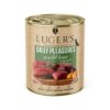 Linia de hrană umedă Luger’s Daily Pleasures este un produs conceput pentru hrănirea zilnică a câinilor adulți de toate rasele. Compoziția și proporțiile selectate cu precizie ale materiilor prime individuale cu cea mai mare valoare nutritivă acoperă cererea pentru toți nutrienții, ținând cont de liniile directoare nutriționale moderne. Baza formulei alimentare este carnea și organele de înaltă calitate. Datorită acestui fapt, un câine adult primește cantitatea potrivită de proteine de valoare completă, bogate în toți aminoacizii exogeni, grăsimi și, odată cu aceasta, acizii grași, atât saturați, cât și polinesaturați, și majoritatea componentelor vitaminelor și mineralelor. Adăugarea de legume asigură cantitatea necesară de carbohidrați, care garantează cursul corect al tuturor proceselor metabolice. Substanțele biologic active conținute în aditivi, precum sucul de sfeclă roșie pudră și rozmarinul, protejează împotriva efectelor negative ale stresului oxidativ și, influențând activitatea secretorie a tubului digestiv, reglează procesele digestive. Compoziția variată, prezența multor aditivi valoroși în formulă și metoda de producție asigură palatabilitatea ridicată a alimentelor Luger’s Daily Pleasures.