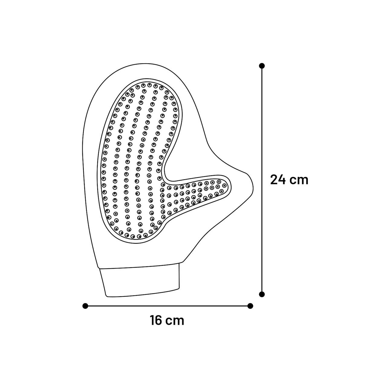 Mănușă din material textil, cu perie de cauciuc, ideală pentru perierea câinilor sau pisicilor.