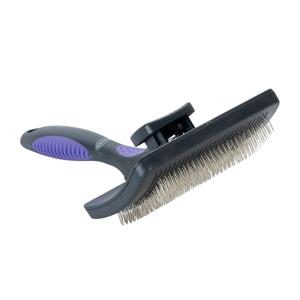 Marime: 8,7 cm / 7 cmUn instrument de toaletare versatil, care acționează blând și eficient, descâlcind blana și îndepărtând firele căzute în blană.Dinții retractabili economisesc timp prețios la curățare.Când peria s-a umplut, lăsați părul să cadă apăsând pur și simplu butonul de pe spatele periei.Pentru animale cu blană lungă/ deasă/ dublăÎndepărtează firele căzute din substratul blănii fără a deteriora stratul superior de blanăÎndepărtează mizeria, firele căzute, nodurile și firele încâlcite