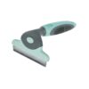 Partea metalică îndepărtează părul încâlcit, nodurile de blană și mizeria, în timp ce masează pielea animalului.