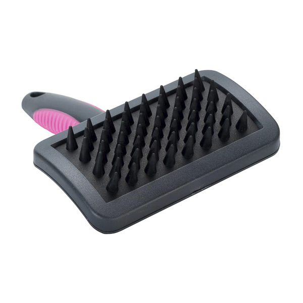 Îndepărtează cu ușurință firele de păr căzute, masând în același timp animalul și ajutându-l să se relaxeze. Dinții de cauciuc stimulează secreția naturală de sebum a blănii.Pentru animale cu blana scurtă/ medieFavorizează o piele sănătoasăÎmbunătățește circulația sângelui
