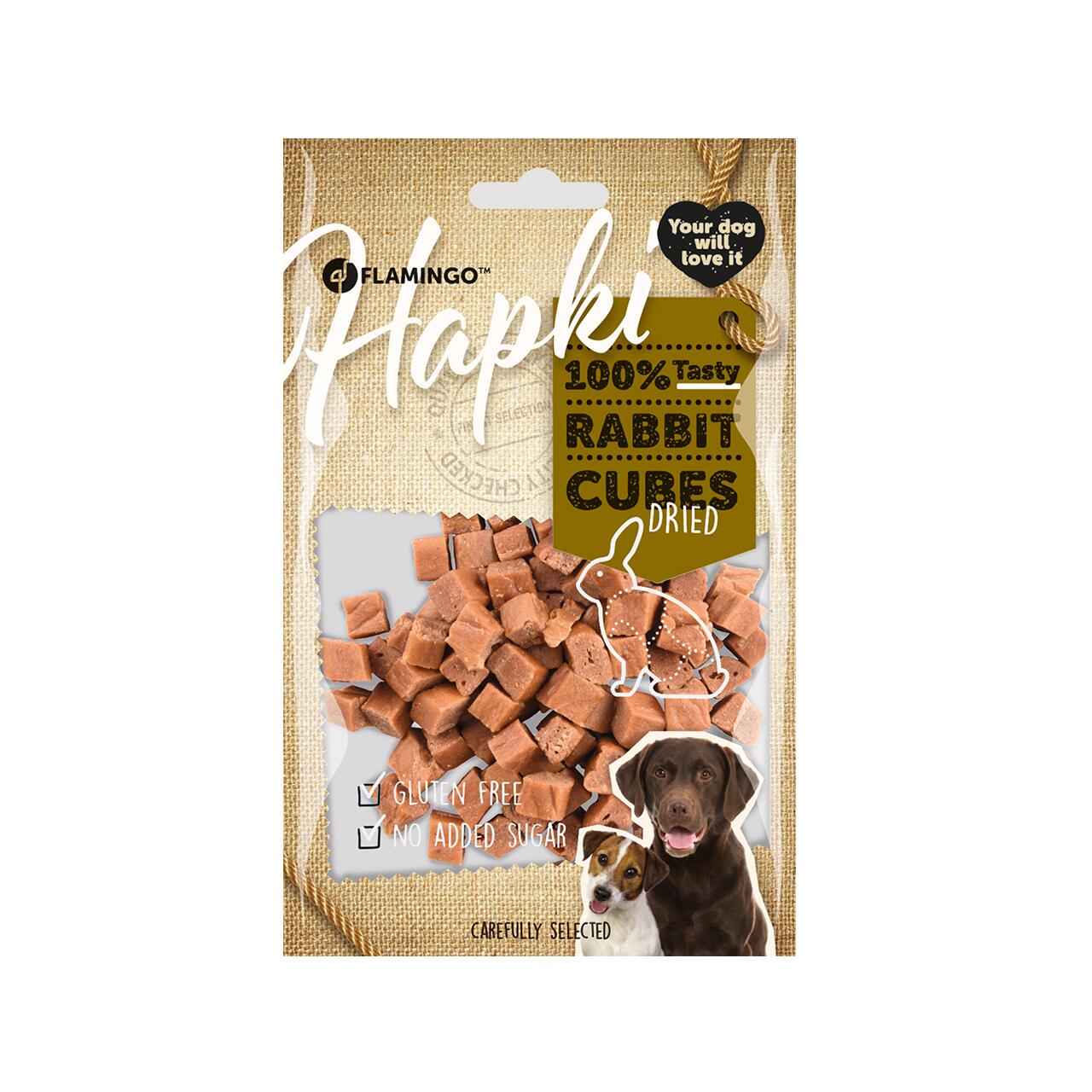 RECOMPENSE PENTRU CÂINI FLAMINGO SNACK HAPKI CUBURI CU IEPURE 85G