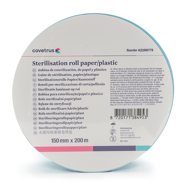 Rola de sterilizare pentru realizarea pungilor de sterilizare folosind un dispozitiv de etansare.Partea frontala este realizata din polietilena transparenta, partea din spate este din hartie.Cu sigiliu triplu pentru etansare, cu banda adeziva si camp indicator (isi va schimba culoarea in urma procesului de sterilizare – cu abur sau chimic).Nu continue latex, iar indicatorii sunt fabricati din materiale ecologice pe baza de apa, fara plumb, cerneala netoxica.Sterilitatea instrumentelor se mentine pana la 180 de zile dupa sterilizare, daca se pastreaza corect.*Toate dispozitivele medicale si materialele care urmeaza a fi sterilizate trebuie curatate si dezinfectate, inaintea de a fi supuse procesului de sterilizare standard.