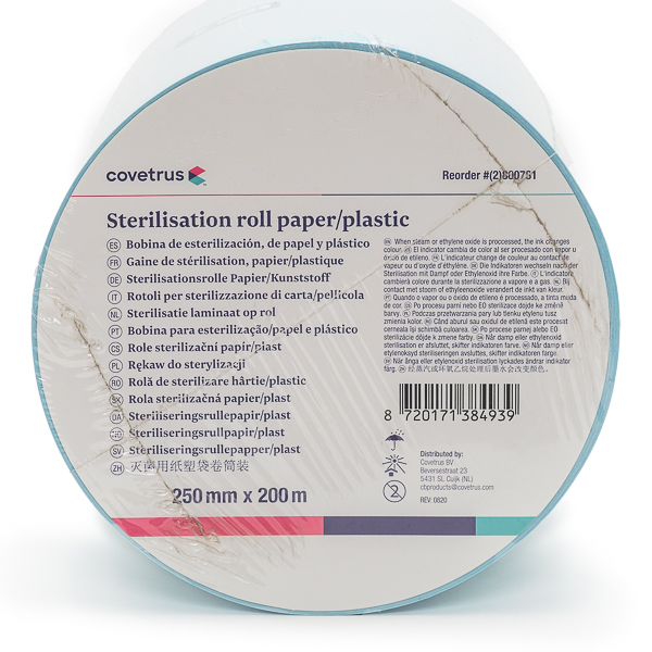 Rola de sterilizare pentru realizarea pungilor de sterilizare folosind un dispozitiv de etansare.Partea frontala este realizata din polietilena transparenta, partea din spate este din hartie.Cu sigiliu triplu pentru etansare, cu banda adeziva si camp indicator (isi va schimba culoarea in urma procesului de sterilizare – cu abur sau chimic).Nu continue latex, iar indicatorii sunt fabricati din materiale ecologice pe baza de apa, fara plumb, cerneala netoxica.Sterilitatea instrumentelor se mentine pana la 180 de zile dupa sterilizare, daca se pastreaza corect.*Toate dispozitivele medicale si materialele care urmeaza a fi sterilizate trebuie curatate si dezinfectate, inaintea de a fi supuse procesului de sterilizare standard.