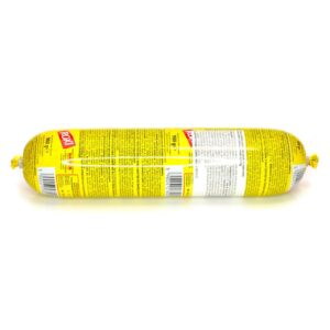 carne si derivate de origine animala 80% (inclusiv min. 5% carne de vita), cereale, derivate de origine vegetala, substante minerale.