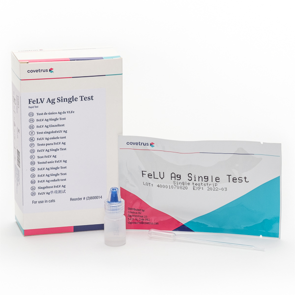 Testul rapid Covetrus FeLV Ag este utilizat pentru testarea antigenului pentru virusul leucemiei feline (FeLV) în ser, plasmă sau sânge integral la pisici.