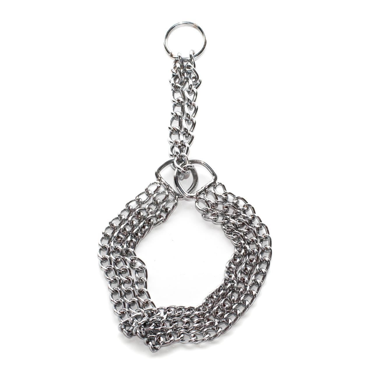 Zgarda foarte eleganta, formata din 3 lanturi metalice foarte rezistenta, utilizata in special pentru cainii de talie mare este eficienta pentru caini activi. Proiectata pentru comfortul cainelui.
